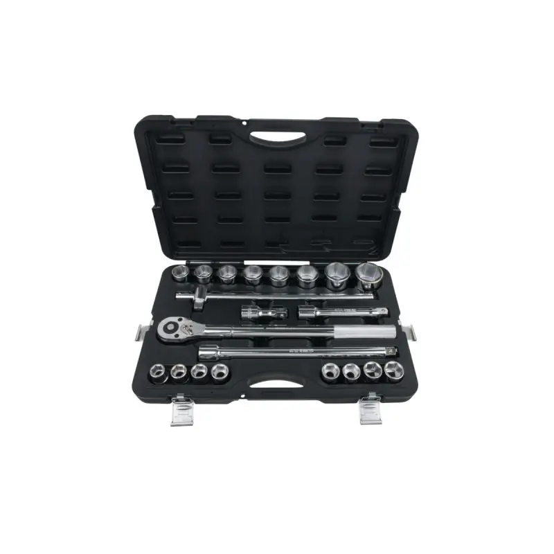 Discover the 6-point socket set in inches and accessories KS TOOLS 3/4'' a complete and robust set designed to meet the needs of professionals and DIY enthusiasts. With its 21 pieces this set is the ideal tool for performing assembly disassembly and maintenance work with unmatched precision. The high-quality sockets are made from chrome vanadium steel ensuring durability and wear resistance making it a wise choice for intensive use.