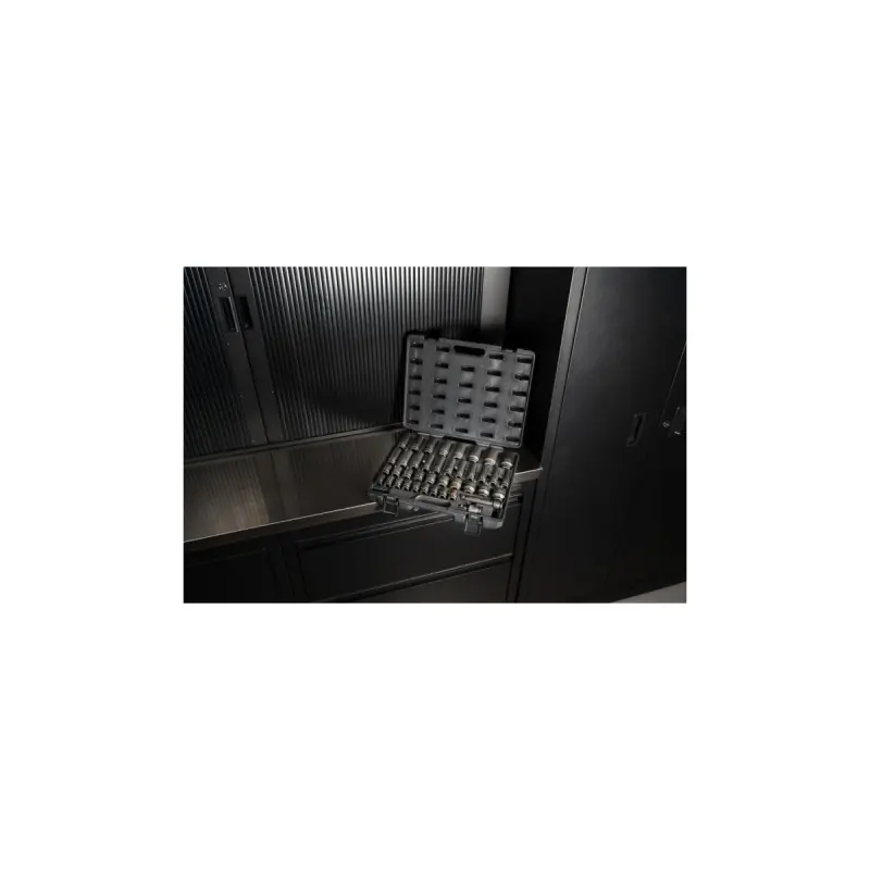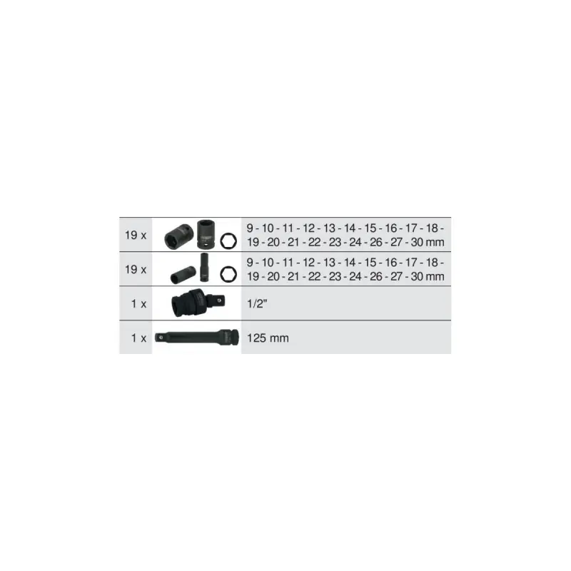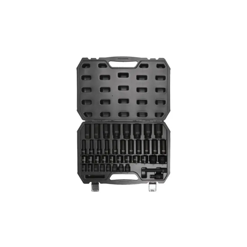 Impact sockets are specially designed to withstand high torsional forces, making them ideal for loosening and tightening large bolts and nuts. Thanks to their short and long design, you can easily access hard-to-reach areas while ensuring optimal torque. The set also comes with a practical storage solution to keep your sockets organized and easily accessible.