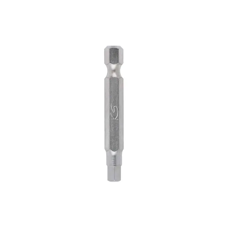 6-point drive according to DIN 3126 / ISO 1173 - E 6 3 For manual use or with a screwdriver Nickel-plated Steel box containing 5 bits
