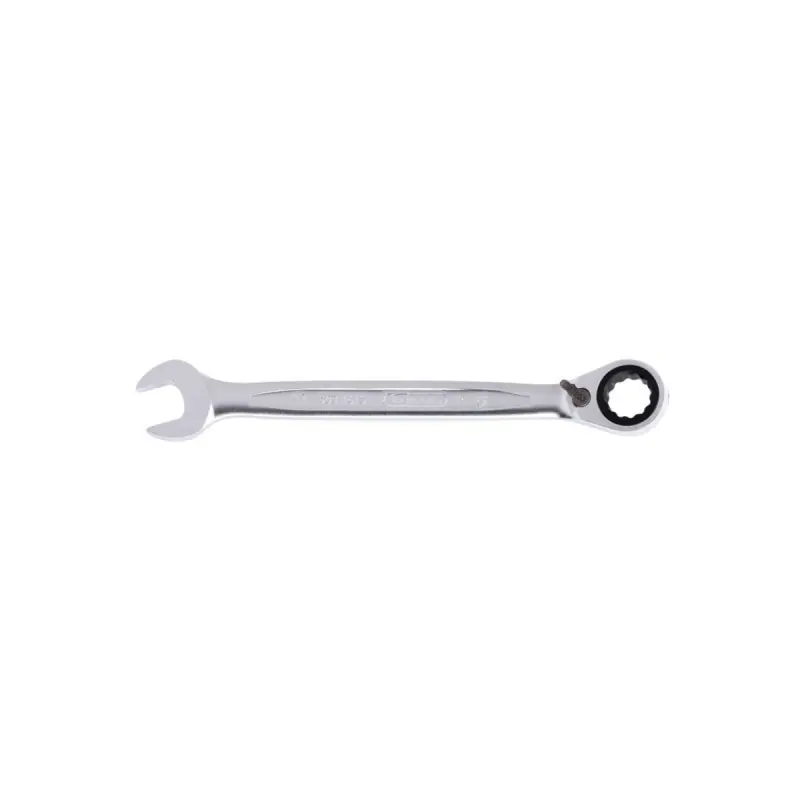 The GearPlus KS TOOLS reversible ratchet combination spanner - 15 mm - 503.4615 features a fork angle of 15° and a 13° angled eye. The 72-tooth reversible ratchet allows you to work with minimal effort during tightening and loosening. With a robust chrome-vanadium design, you will have a sturdy tool that meets DIN 3113 / ISO 3318 / ISO 7738 standards.