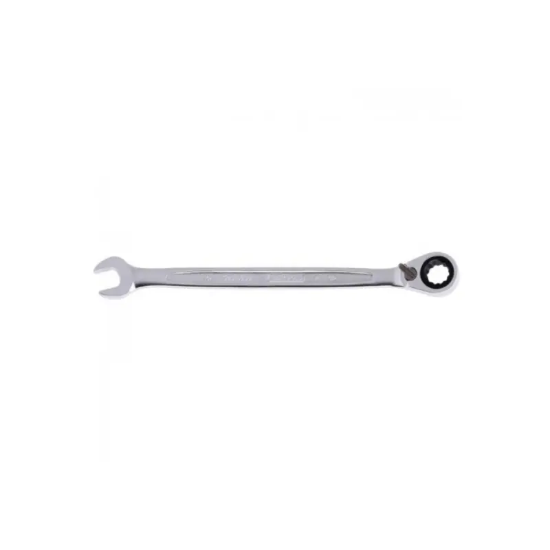 The GearPlus KS TOOLS reversible ratchet spanner - 9 mm - 503.4609 features a fork angle of 15° and a 13° angled eye. The 72-tooth reversible ratchet allows you to work with minimal effort during tightening and loosening. With a robust chrome-vanadium design, you will have a sturdy tool that meets DIN 3113 / ISO 3318 / ISO 7738 standards.