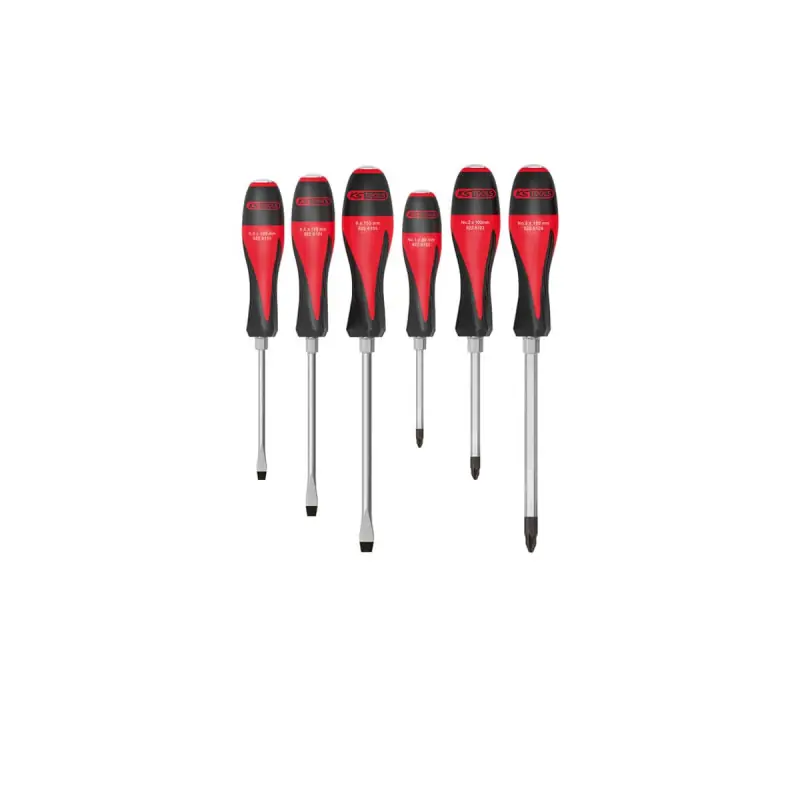 KS TOOLS Ultimate Max Screwdriver Set - 6 pcs set of flat and pozidriv screwdrivers ideal for optimal torque transmission. Suitable for both everyday and professional use. These screwdrivers offer you unbeatable durability and optimal shock transmission.