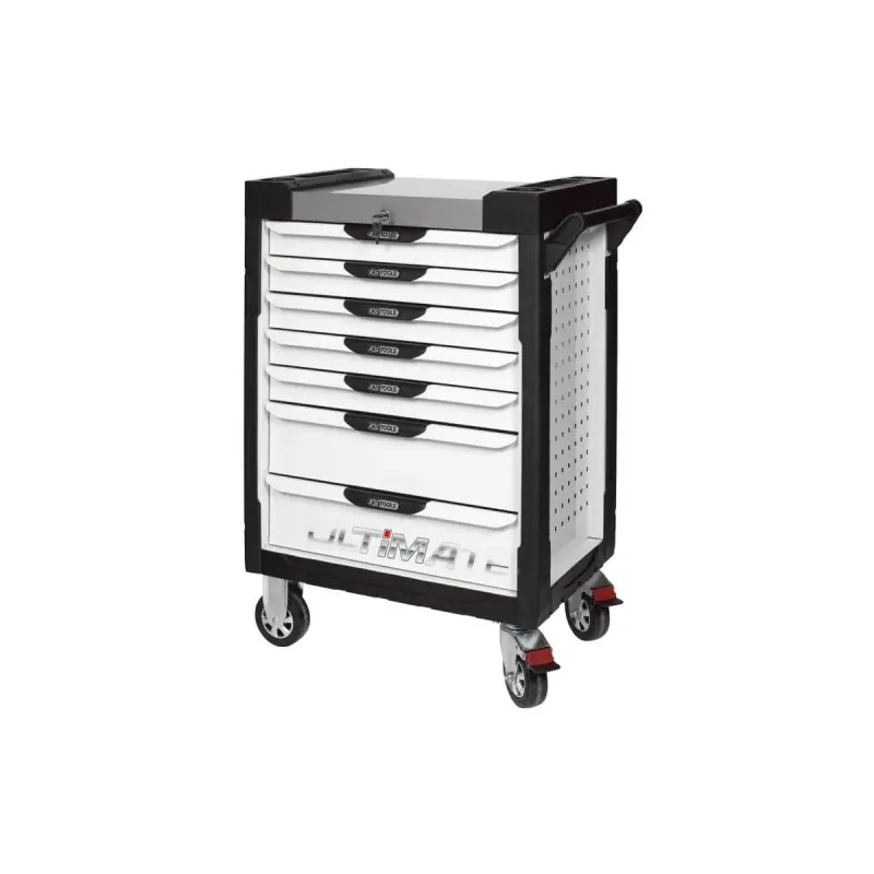 The KS TOOLS Ultimate Tool Trolley - White - 803.0007 can accommodate a multitude of tools thanks to its 7 drawers. It is ideal in a professional setting as well as for a hobbyist. Additionally, it is equipped with a locking system with a side lock. (Tools not included)
