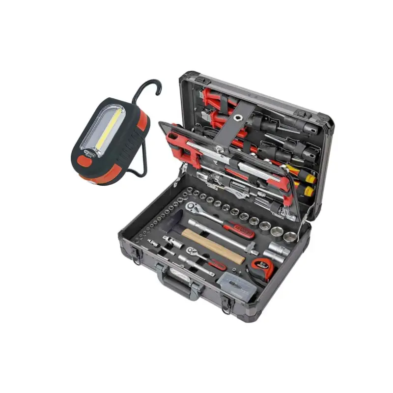 KS TOOLS Ultimate Tool Set - 131 pcs - 922.0731 - LED Work Light - 200 lumens - 150.4375 Aluminium maintenance case consisting of 131 robust pieces 1/4" and 1/2". Suitable for use in workshops and on construction sites. Tools have a chrome and satin finish.