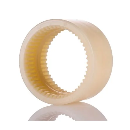 Each coupling comprises of three parts (sold separately) two coupling hubs and a gear coupling sleeve. BoWex M Tooth Gear Coupling Sleeve. BoWex® Curved-tooth gear couplings® are flexible shaft connections for a positive torque transmission and used to compensate for axial, radial and angular shaft misalignment. Using curved-tooth gear couplings® avoids any edge pressure in the spline plus angular and radial displacements are avoided so that BoWex® couplings are almost free from wear. The material combination of steel hubs and polyamide sleeves allows for maintenance free continuous operation with low friction on the teeth. While any metallic materials tend to "corrode" in case of dry running, slide combinations with polyamide and steel are operative without any lubrication or maintenance. Due to the double cardanic operation of BoWex® couplings, restoring forces can be neglected in case of angular and radial displacements. Periodic fluctuations in angular velocity do not arise. BoWex® couplings can be assembled both vertically or horizontally with no need for any special assembly tools. The smooth and hard surface plus the high thermal stability and resistance to lubricants, fuels, hydraulic fluids, dissolvents, and so on, make polyamide an ideal material for components stressed by sliding, particularly for the coupling production. Features and Benefits. For all applications in the range of machinery and hydraulics Maintenance free due to material combination nylon/steel Taper and inch bores for hydraulic pumps 100° maximum operating temperature Absorbs axial, angular and radial misalignment Torsionally rigid Short shaft distance. Product Application Information. Food industry, print and paper industry, textile industry, sewage technology, wash-mobiles, chemical and pharmaceutical, offshore units, and so on. For use in aggressive environments (air, water, chemicals, and so on).