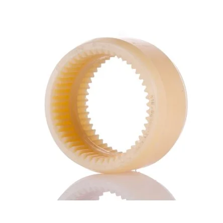 Each coupling comprises of three parts (sold separately) two coupling hubs and a gear coupling sleeve. BoWex M Tooth Gear Coupling Sleeve. BoWex® Curved-tooth gear couplings® are flexible shaft connections for a positive torque transmission and used to compensate for axial, radial and angular shaft misalignment. Using curved-tooth gear couplings® avoids any edge pressure in the spline plus angular and radial displacements are avoided so that BoWex® couplings are almost free from wear. The material combination of steel hubs and polyamide sleeves allows for maintenance free continuous operation with low friction on the teeth. While any metallic materials tend to "corrode" in case of dry running, slide combinations with polyamide and steel are operative without any lubrication or maintenance. Due to the double cardanic operation of BoWex® couplings, restoring forces can be neglected in case of angular and radial displacements. Periodic fluctuations in angular velocity do not arise. BoWex® couplings can be assembled both vertically or horizontally with no need for any special assembly tools. The smooth and hard surface plus the high thermal stability and resistance to lubricants, fuels, hydraulic fluids, dissolvents, and so on, make polyamide an ideal material for components stressed by sliding, particularly for the coupling production. Features and Benefits. For all applications in the range of machinery and hydraulics Maintenance free due to material combination nylon/steel Taper and inch bores for hydraulic pumps 100° maximum operating temperature Absorbs axial, angular and radial misalignment Torsionally rigid Short shaft distance. Product Application Information. Food industry, print and paper industry, textile industry, sewage technology, wash-mobiles, chemical and pharmaceutical, offshore units, and so on. For use in aggressive environments (air, water, chemicals, and so on).