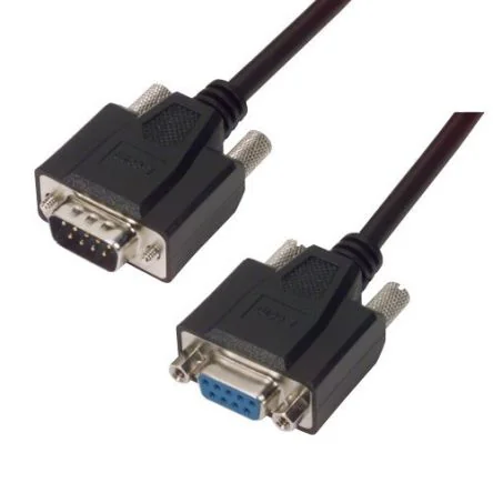 10ft L-Com Male DB9 to Female DB9 cable assembly with durable PVC sheath.