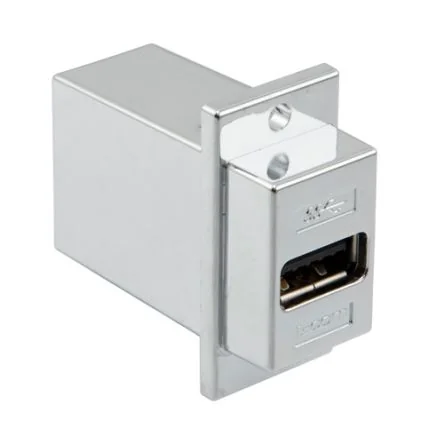 Single port panel mount USB 3.0 socket with a straight body orientation.