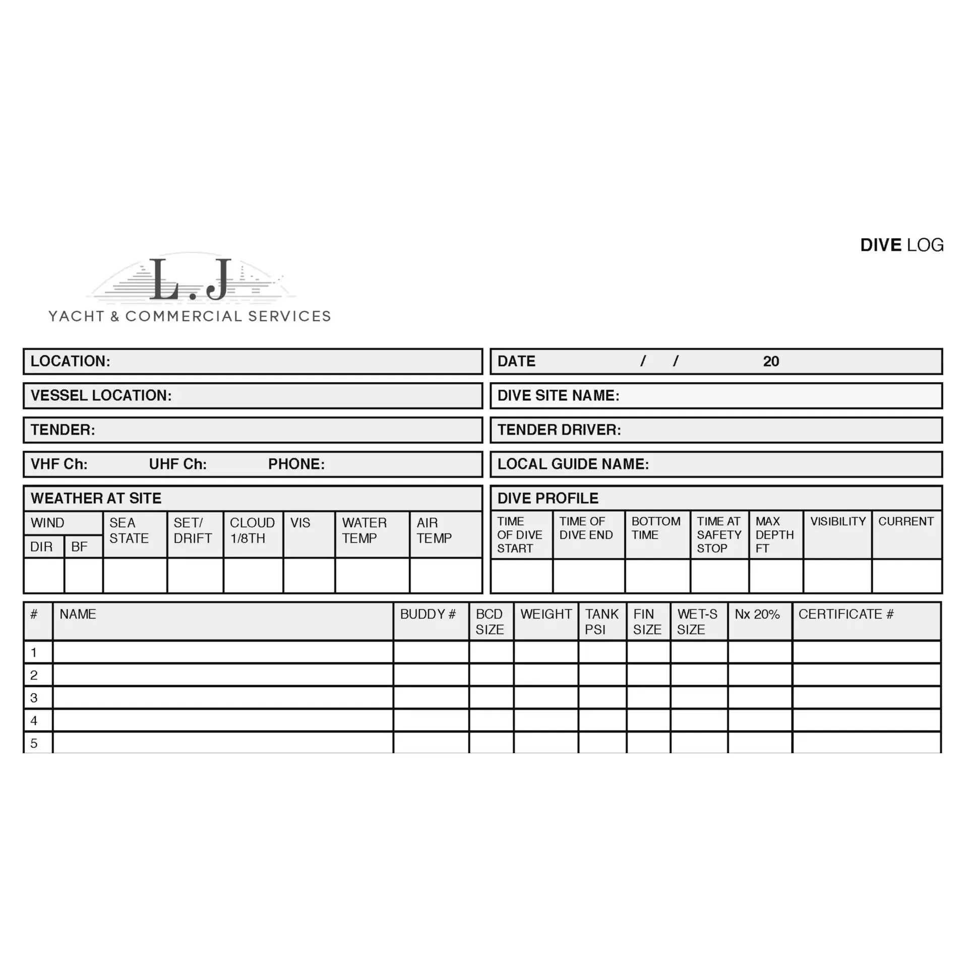 - Information relating to the dive such as time, date and location