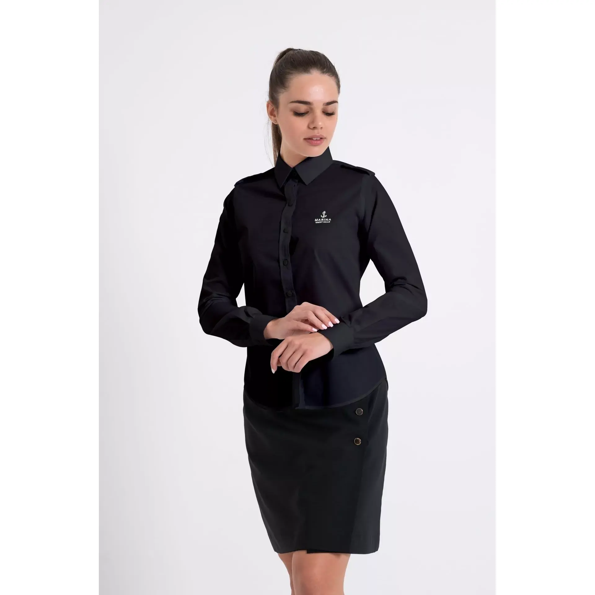 Ladies Long Sleeve Dress Shirt with epaulette - Black - Marina Yacht Wear