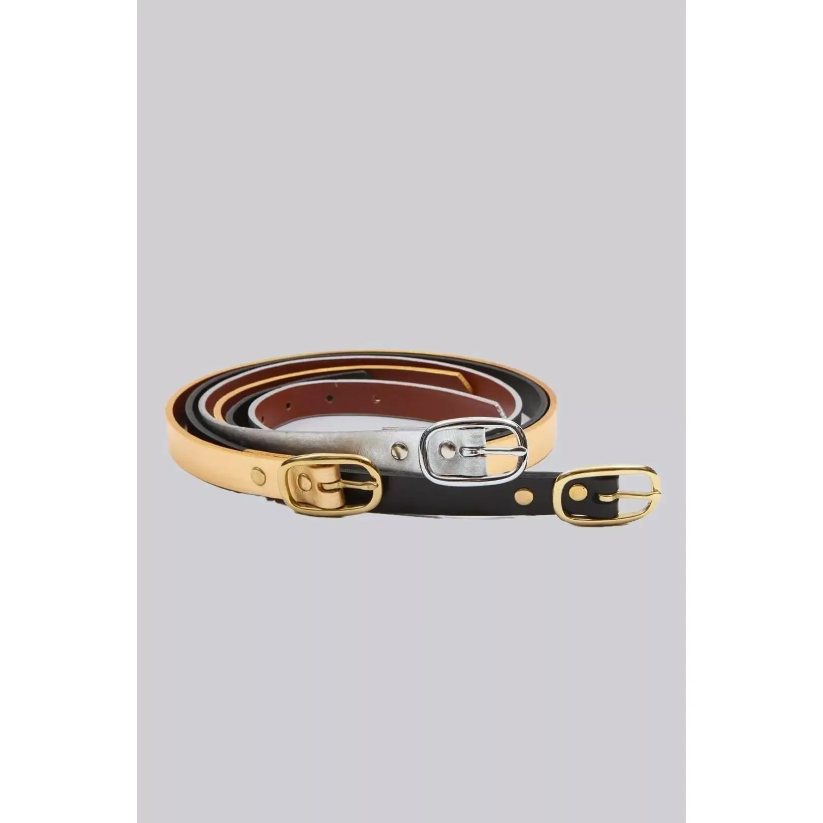 Stylish Ladies Skinny Metallic Leather Belt by Liquid Yacht wear.