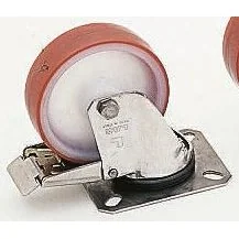 Polyurethane Injection Tyre, Nylon Hub, Medium Duty, Series INOX 20 . Plate Fixing castors. Quiet and easy running under heavy loads. Resistant to corrosion, abrasion and shocks. Manufactured from hygienic materials. Nylon 6 wheel with polyurethane tyre Tyre hardness 58±3 Shore D Plain bore hub bearing Swivel types have stainless steel ball bearings Operating Temperature -30°C to +80°C Wheel series N Stainless steel fork material
