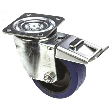 Blue Elastic Rubber Tyre, Nylon Hub, Medium Duty, Series M22. Often used within the food industry and similar environments, these plate-mounted blue elastic rubber tyre castors offer excellent smooth running characteristics, high abrasion resistance and shock absorbing propoerties. The tyres are non-marking, and the castors are RoHS-compliant and available in various sizes to suit a number of load applications. Hardness 70 ±5, Shore A Wheel series LB