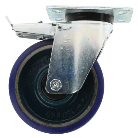 Heavy-duty braked swivel castor wheel with a 450kg capacity and durable polyurethane tyre.