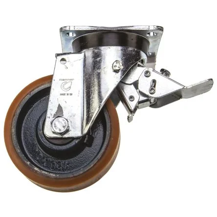 Heavy-duty braked swivel castor wheel with 700kg capacity and durable polyurethane tyre.
