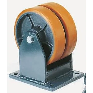 Polyurethane Tyre, Cast Iron Twin Hub, Extra Heavy Duty, Series G80 . Twin cast iron wheels, fitted with shielded bearings Swivel types have a taper roller bearing and single thrust bearing with grease nipple and head seal Polyurethane tyre Wheel series Z
