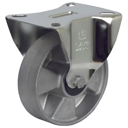 High Temperature Aluminium Wheel, Medium Duty, INOX 20 Series. Aluminium wheeled industrial castors with pressed stainless steel top plate and swivel fork. Ball bearings are stainless steel and protected from dirt and dust by a thermoplastic protection ring. suitable for high temperature applications and loads up to 370kg (see individual product specifications). Polished stainless steel finish Stainless steel ball bearings INOX20 U Ultra series wheel