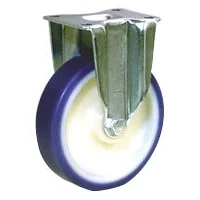Soft Blue Polyurethane Tyre, Cast on Nylon Hub, Medium Duty . Quiet and easy running castors under heavy loads due to their polyurethane coating. Resistant to corrosion, abrasion and shocks giving them excellent durability. Manufactured from hygienic materials. Hub available with shielded precision ball bearings and standard or stainless steel roller bearing. Tyre hardness 87±3 Shore D Operating Temperature -30°C to +80°C Stainless steel fork material