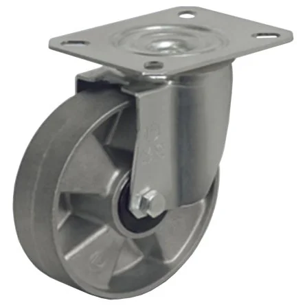High Temperature Aluminium Wheel, Medium Duty, M22 Series. Aluminium wheeled industrial castors with pressed stainless steel top plate and swivel fork. Ball bearings are stainless steel and protected from dirt and dust by a thermoplastic protection ring. suitable for high temperature applications and loads up to 370kg (see individual product specifications). Electro-zinc plated finish Hardened steel ball bearings M22 series top plate / swivel U Ultra series wheel