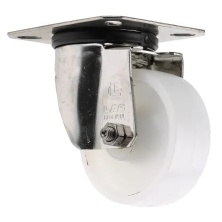 Nylon Polyamide Wheel, Stainless Steel Fork, Medium Duty, Series INOX 20 . A range of high quality polyamide castors with minimal rolling resistance. Easy to keep clean and resistant to corrosion, shocks and abrasion. Plate fixing castor made from hygienic materials Resistant to corrosion, abrasion ; shock Easy running under heavy loads Operating Temperature -30°C to +80°C Wheel series P Stainless steel fork material