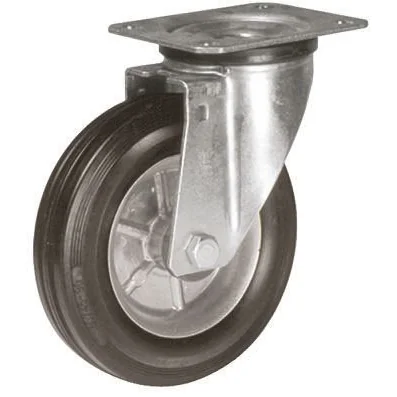 Rubber Tyre, Steel Hub, Medium Duty, Series M22 - Plate Mounted. Black, non-marking rubber tyre Electro-zinc plated white passivate pressed steel frame RoHS compliant Roller hub bearing Hardness: 85 ±5, Shore A Wheel series B