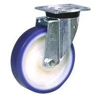 Soft Blue Polyurethane Tyre, Cast on Nylon Hub, Medium Duty . Quiet and easy running castors under heavy loads due to their polyurethane coating. Resistant to corrosion, abrasion and shocks giving them excellent durability. Manufactured from hygienic materials. Hub available with shielded precision ball bearings and standard or stainless steel roller bearing. Tyre hardness 87±3 Shore D Operating Temperature -30°C to +80°C Stainless steel fork material