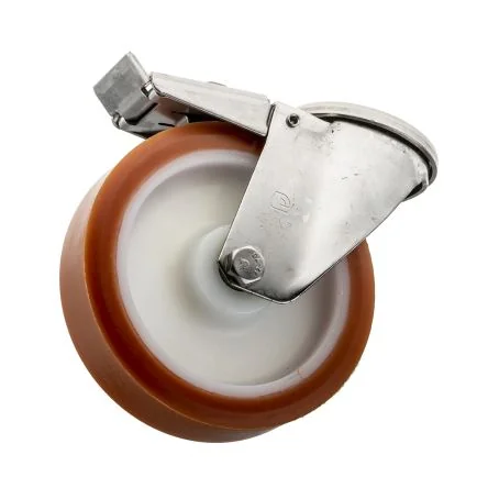 Polyurethane Cast Tyre, Nylon Hub, Medium duty, Series INOX 20 . High quality castors with cast polyurethane coating and a polyamide core. These castors are resistant to shocks, corrosion and abrasion which makes them easy to clean and enables them to run smoothly with little noise. Corrosion, abrasion and shock resistant Quiet and smooth running Inox roller bearing Single bolt hole M12 Wheel series A Stainless steel fork material
