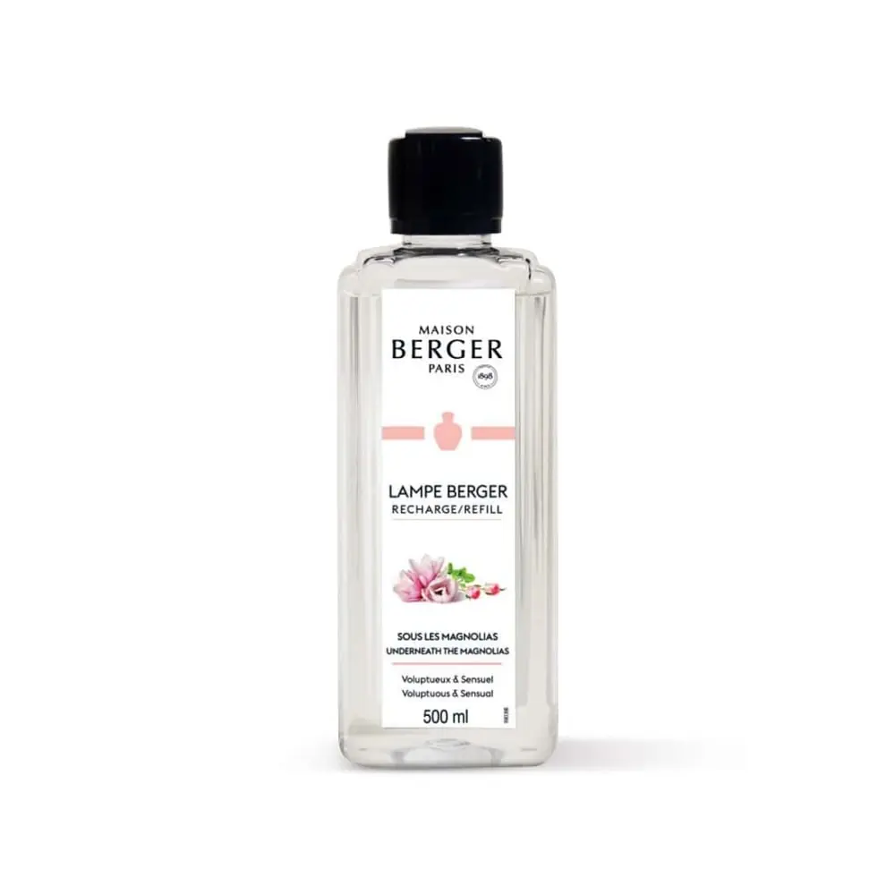 Refined, provocative, and sensual, the Lampe Berger Under the Magnolias perfume is presented here in its 500 ml version, enough to perfume your home with a Lampe Berger for a long time. It will bring a real desire to travel on a background of floral notes such as rose with light notes of lemon, black jasmine, or even patchouli.