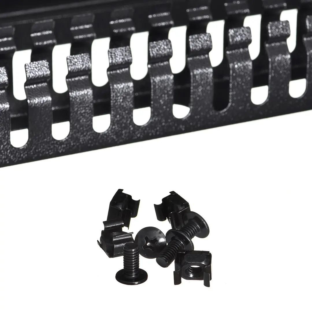 Efficiently organize cables with Lanberg's 1U cable management panel for 19" cabinets.