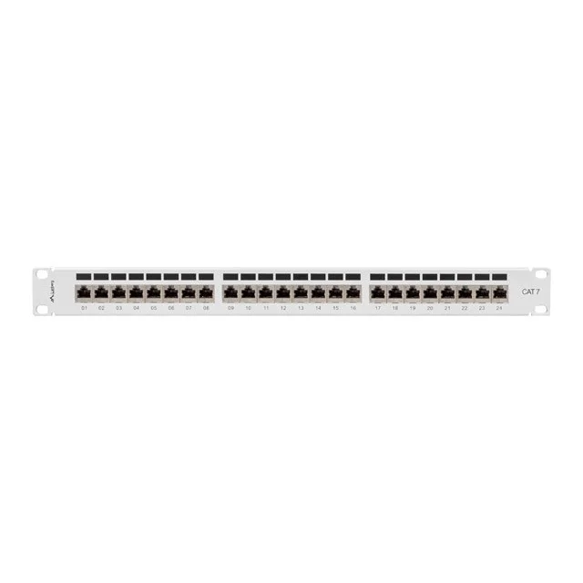 This particular patch panel is designed to use in main and secondary distribution points of fast telecommunications systems.It is a passive part of structured cabling used for termination and organization of twisted-pair cables within 19" rack cabinets. Patch panels is equipped with 24 shielded RJ-45 ports category 7.Use of IDC/LSA connectors, provides fast and easy installation. Cable management panel attached to this product, ensures easy assembly.Stiffened shelf with handles allows easy organization of cables and stability of assembly.