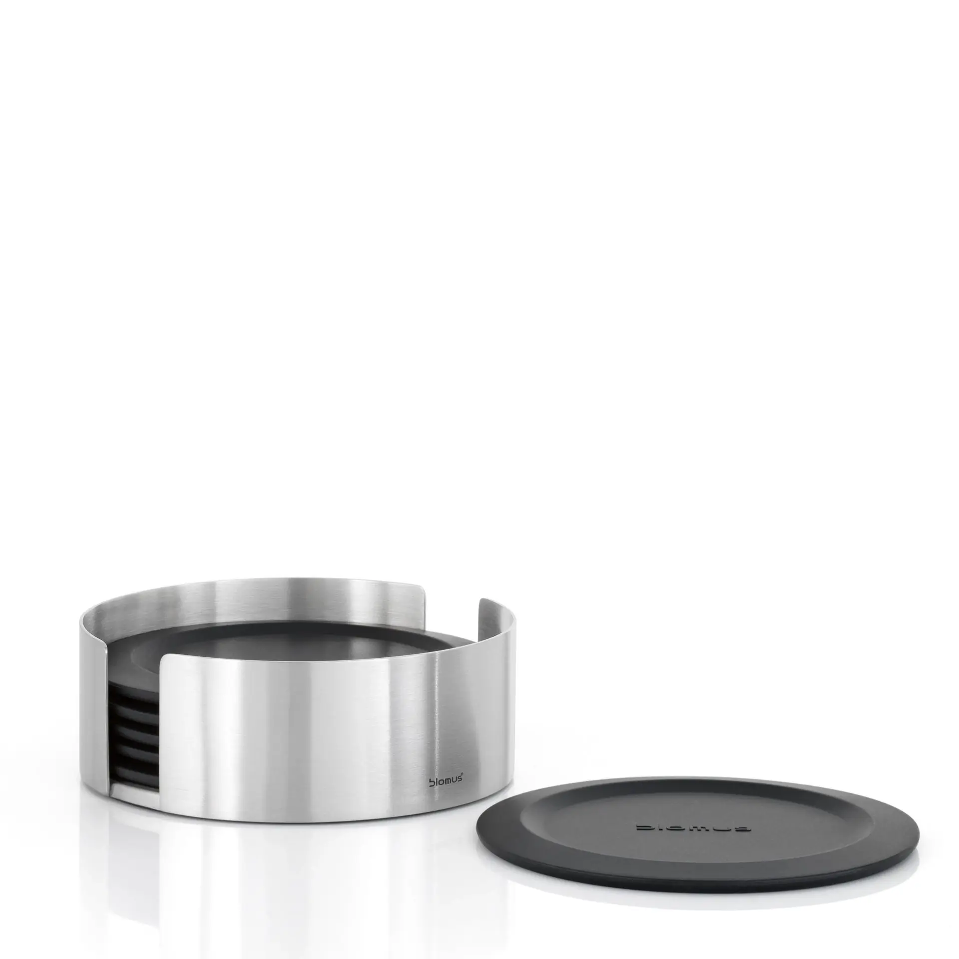 Set of 6 coasters in stainless steel matt & silicone - non slip