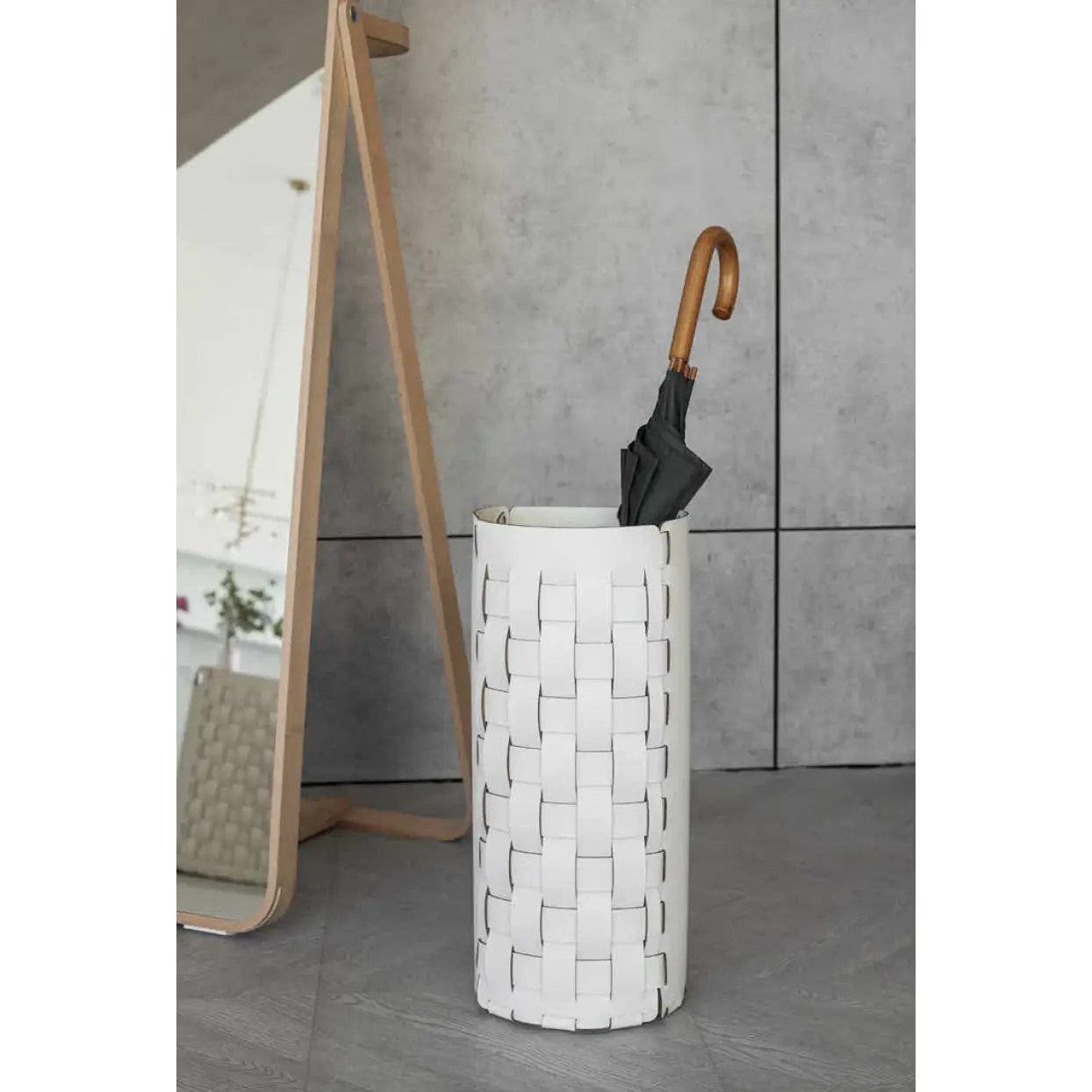 An elegant and useful umbrella stand made of leather that is impervious to moisture and dirt. It is an essential piece for keeping your house clean.