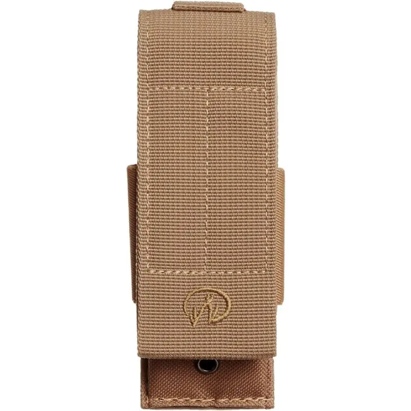 The MOLLE XL black sheath by Leatherman is specially designed to hold large multitools such as MUT, SuperTool 300, Surge, and Charge TTI. It uses the MOLLE attachment system, ideal for integration into tactical vests, belts, backpacks, or other accessories with compatible anchor points.