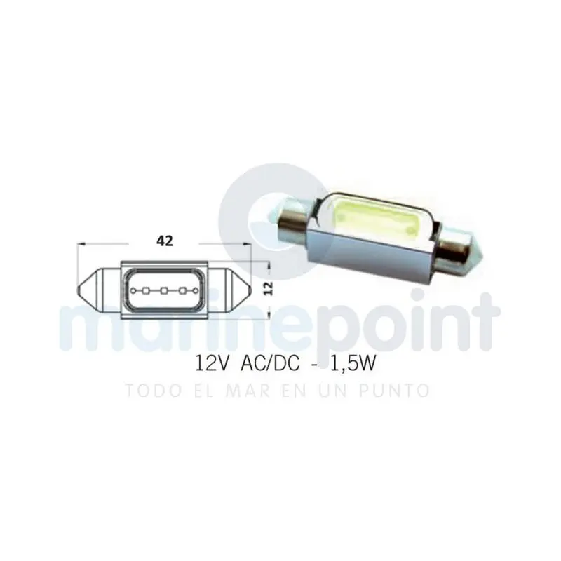The LED bulb for SV8.5-8 ceiling light at 12V provides warm lighting (3000K) ideal for interior spaces onboard, offering low consumption and long lifespan.