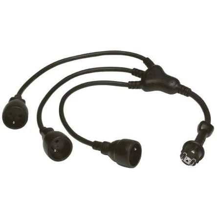 Comply with recommendations from the OPPBTP (Professional Organisation for Prevention in Construction and Public Works). Multi-socket worksite extension. Impact and friction-resistant rubber extension. (IK 10). Equipped with an IP 44 plug and three extension cables.