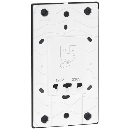 BS EN 61558-2-5. ARTEORâ„¢ Shaver Sockets. IP 24 For use with European, British, American, Australian 2-pin plugs Screwless live and neutral terminals Double wound isolating transformer Automatic self-resetting overload feature Plug insertion operates micro-switch which energises transformer To be equipped with BS 2 gang - 3-module plates For flush-mounting boxes, use BS 2 gang box depth 48 mm, US type, Italian type boxes depth 48 mm Power supply: 230V - 50/60Hz 3 Modules