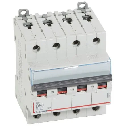 Legrand DX3 Circuit Breaker, 4P, 50A Curve D, 400V AC, 10 kA Breaking Capacity - 408122