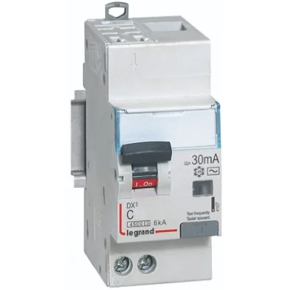NF EN 61009-1 4500 - NF EN 60898-1 6 kA - EN 60947-2. Type C Single pole + neutral RCDs DX³4500. RCDs that allow the use of HX³ supply busbars. Residual current devices from 10 A to 32 A AC type : detect AC component faults