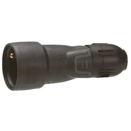 2P+T rubber extensions and plugs. Quick-connect plugs and extension cables with automatic terminals and cable gland cable clamp. Strong cable clamp for sealing and clamping without tools (resistance strength of the cable clamp: 30 kg at 2.5 mm²). IP44. Cable H07RNF 3G 2.5 mm² maximum.