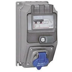 Durable IP44 wall mount power socket rated at 16A for industrial use.