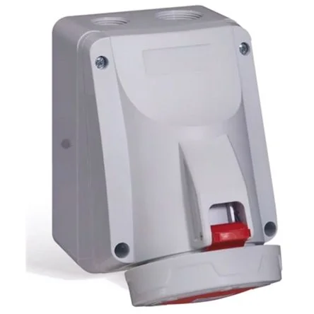BS EN 60309-1, IEC 60309-1 , BS EN 60309-2, IEC 60309-2. P17 Tempra Pro Surface Mount Socket Connectors, IP67. Legrand P17 Tempra Pro surface mount socket connectors, IP67 rating with 2 or 3 pole and earth/neutral arrangement as stated, ratings from 16 to 125A. The connector body is constructed from polymide 6 material, for use with differing voltages as defined by the colour of the cap, yellow 100 to 130V, blue 200 to 250V, red 380 to 415V. Features a single captive screw per terminal for easy connectivity, the socket can be fixed at two angles, either 5 or 25 degrees if required.