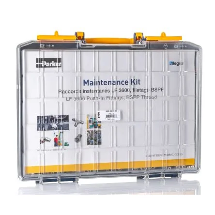 Legris Pneumatic Fittings Maintenance KitThe Legris pneumatic fittings maintenance kit is used to reduce production interruptions and essentially carry out rapid maintenance operations. It is resistant to temperature up to 150°C at 30bar pressure. It shows excellent mechanical performance and enables the application to perform more easily.Features and Benefits• A selection of 232 references covering the most used products • Excellent abrasion and corrosion resistant • High mechanical performance • Parallel thread -BSPPApplications• Industrial applications • Vehicle applications