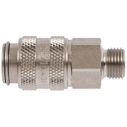 This stainless steel coupling ensures quick and secure pneumatic connections for efficient operations.