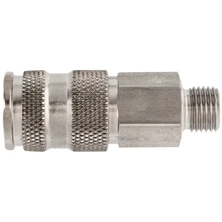 Efficiently connect pneumatic systems with this durable stainless steel coupling.
