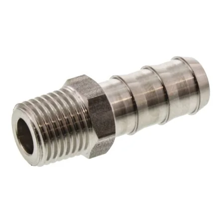 Tailpiece Adaptor Threaded BSPTM - ID Hose. Quick connection of a hose to a male port. Material: 316L Stainless Steel Resistant to aggressive fluids and corrosive environments Maximum working pressure: 150 bar