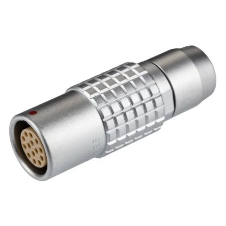 Durable LEMO circular connector with 14 female contacts for reliable cable connections.