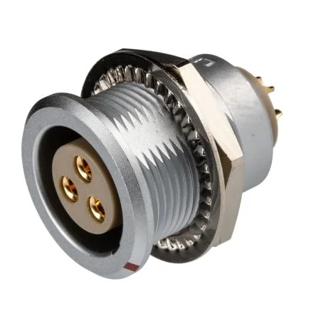 Reliable LEMO circular connector socket with 3 contacts and IP50 rating for secure panel mounting.