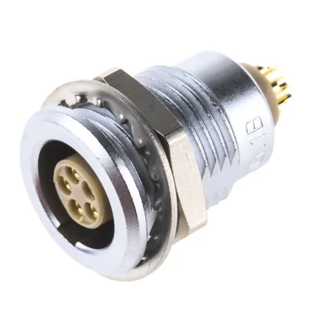 Chassis Socket and 90° PCB/Chassis Socket. From Lemo, this robust chassis socket is designed for secure and efficient coupling with EGG 1B Series connectors. Its convenient modular design ensures its suitability for a variety of applications. Also available as a 90° PCB mount.
