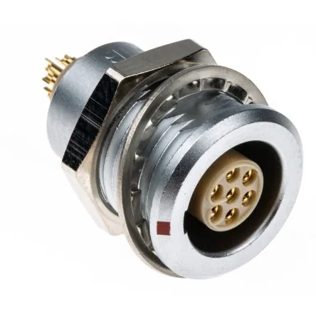 Reliable LEMO circular connector socket with 7 contacts for secure panel mounting.