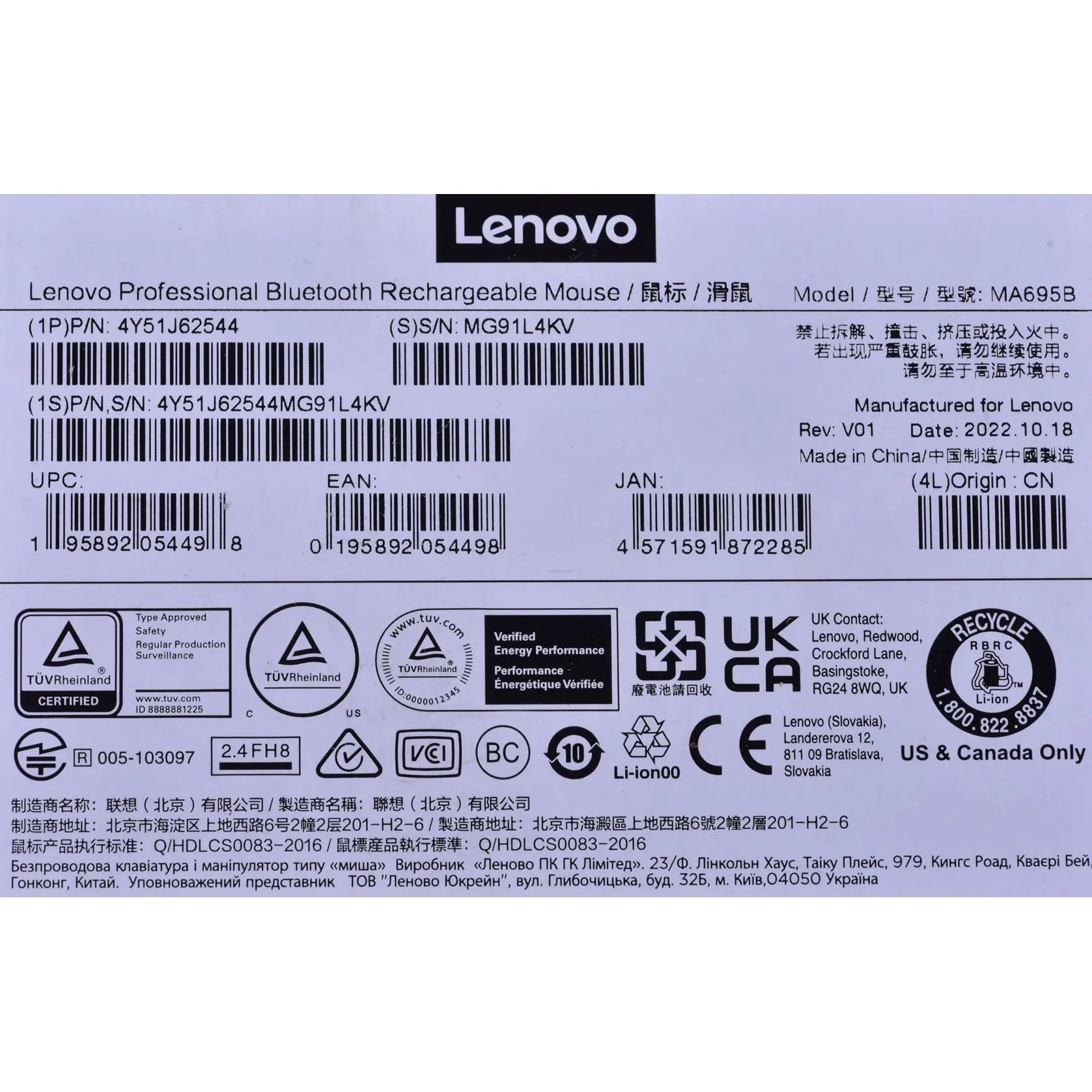 Lenovo 4Y51j62544 Mouse Office Right-Hand Bluetooth Optical 2400 Dpi - 4Y51j62544
